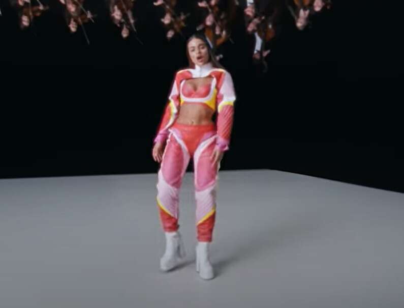 הלוק שהכי אהבנו וכמובן תפס את עינינו הוא סט אופנוענים בצבעוניות של ורוד, אדום, צהוב ולבן, שכולל מכנסיים צמודים מלאים בחיתוכים, בשילוב עם טופ זהה בעל מחשוף מרובע במראה חזייה ורודה ומגפיים לבנים. "הלוק של האופנוענית עוצב על ידי ינקי ונטף ונתפר יומיים לפני הקליפ. הבמאי ביקש עוד לוק אחד בועט וצבעוני, והם הכינו אותו בעיצוב אישי לפי מידותיה ולפי הקונספט של הבמאי".