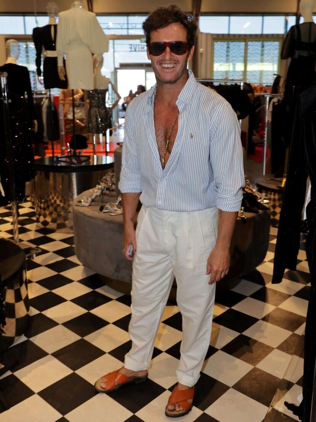אפשר שכל הגברים יתלבשו כמו אנחל בונני? תודה. בונני הגיע במכנסיים לבנים מחויטים בשילוב עם חולצת פסים מכופתרת בכחול-לבן, כפכפים חומים בהירים ומשקפי שמש חומים כהים, צבעוניות קיצית מושלמת.
