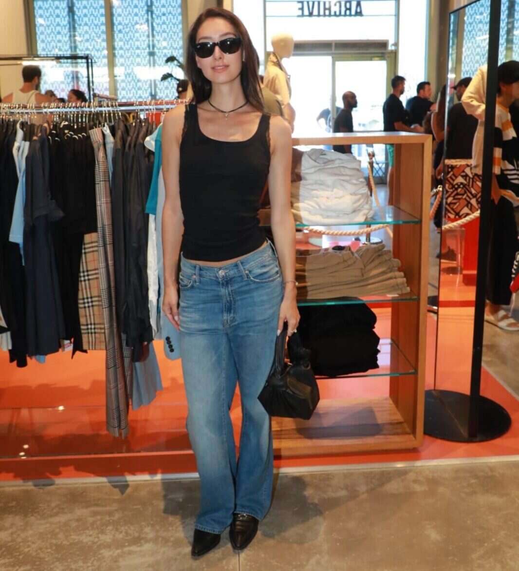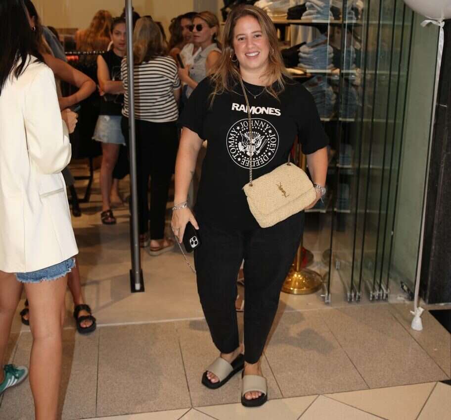 באירוע אחר, של השקת חנות הדגל של מותג האופנה My Jeans בקניון איילון ברמת גן, דניאל עמית התלבשה בלוק שלא ממש גרם לנו להתחבר אליו. המשפיענית הגיעה בג'ינס שחור בשילוב עם טי-שירט שחורה מודפסת, כפכפים בצבע בז', תיק פרווה של איב סאן לורן ועגילי חישוק מוזהבים. מבחינתנו הבסיס של הלוק, הג'ינס והחולצה בסיסיים מדי וממש לא מתחברים לתיק. אם היא הייתה לובשת טי-שירט בצבע יותר מתוחכם כמו פודרה, בטוח שהיא הייתה מרימה את האאוטפיט.
