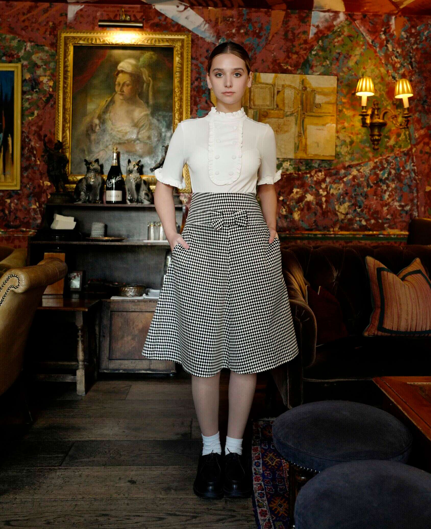 נעמה בצלאל, חצאית מחיר 318 שקלים, חולצה מחיר 249 שקלים // צילום: תום מרשק