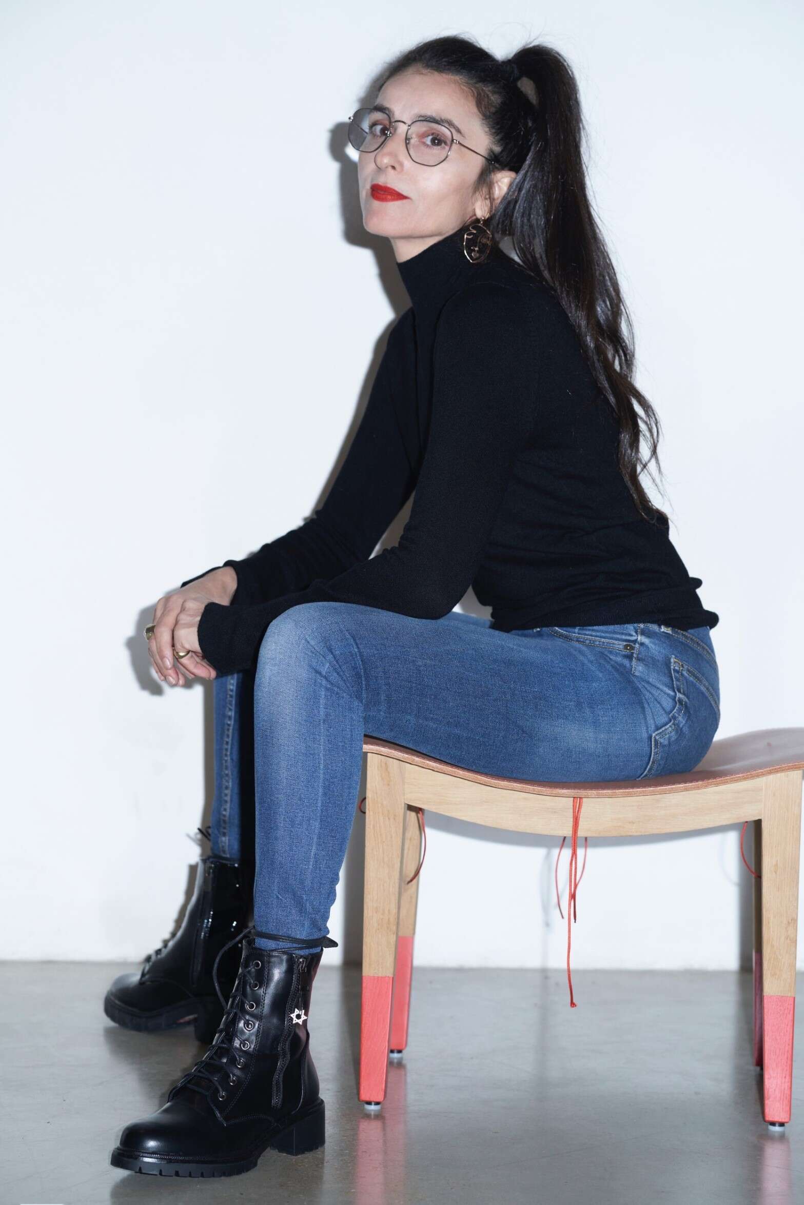 ליאת אשורי עם נעליים בסגנון צבאי ותליון מגן דוד בעיצובה, נעלי סקופ / צילום: רון קדמי