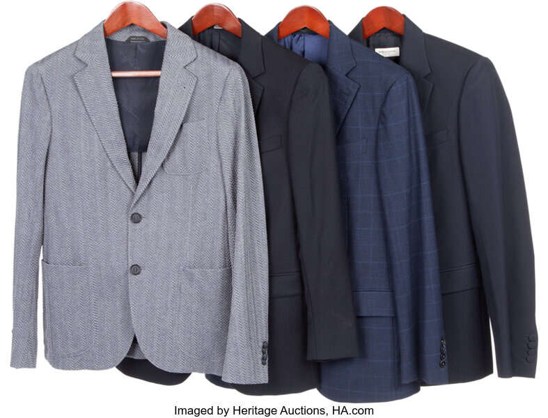סט של ארבעה בלייזרים לגברים של המותגרים ארמני, זנייה ולנוון. מתחיל ב-270 דולר