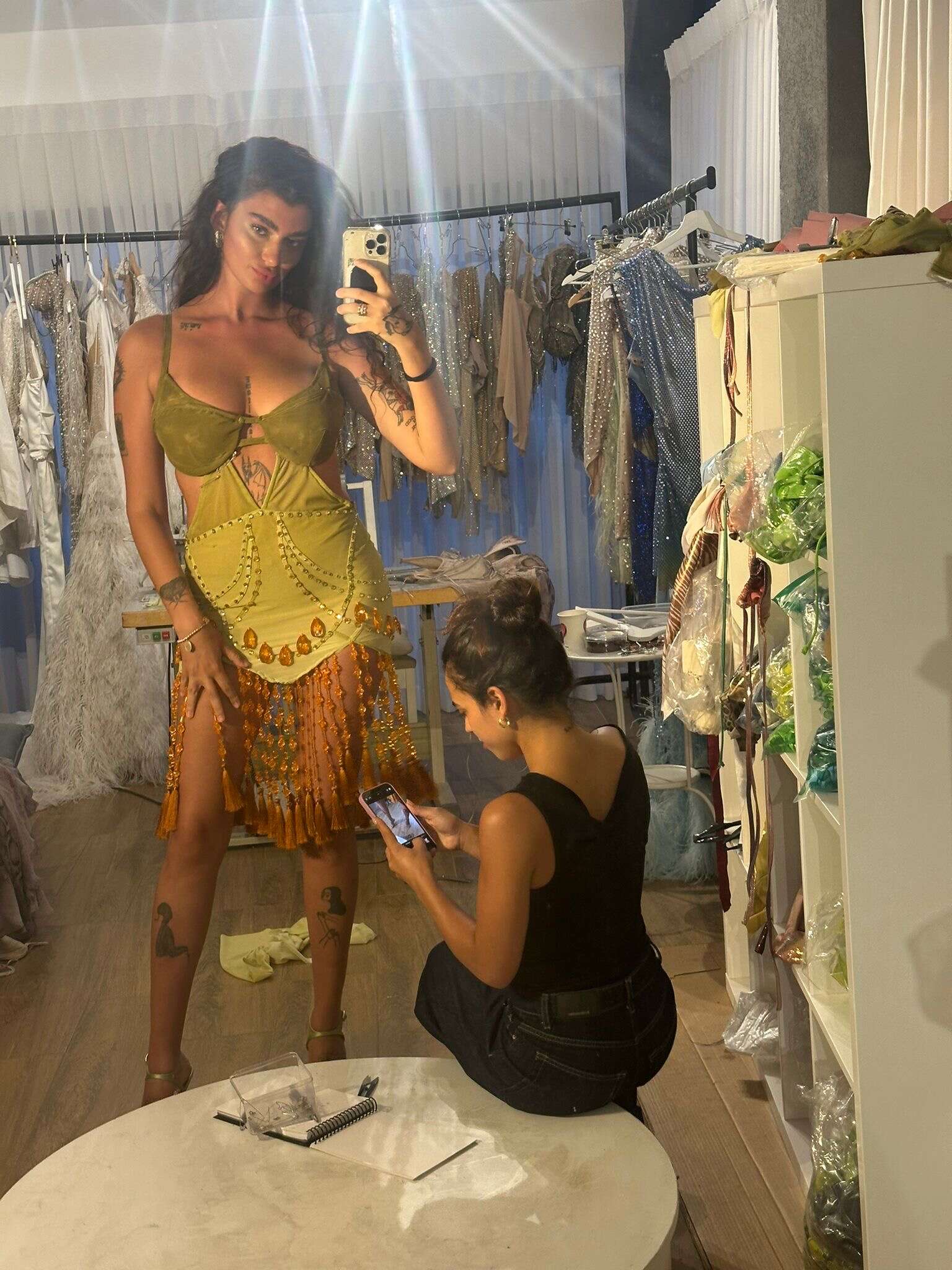 "היינו צריכות לחשוב על הכל מראש. זה המון עבודה. יצרנו הרבה לוקים, ממש הרכבנו איזה בוקר לבגד, מה לערב, עם מה הולכים לישון. לפרידה יש ארון שופע והיא מאוד אוהבת מותגים מקומיים ודברים מיוחדים, כמו Mother of All ופרפל, בגדי יד שנייה שאספנו מ-JADID, ג'ינסים מדיזל וגם בגדי ספורט מסטרונגפול או מכנסי טרנינג של איתי בצלאלי. הכנו הכל ברמת המשקפיים, הגומיות לשיער, צמידים, טבעות ונעליים".