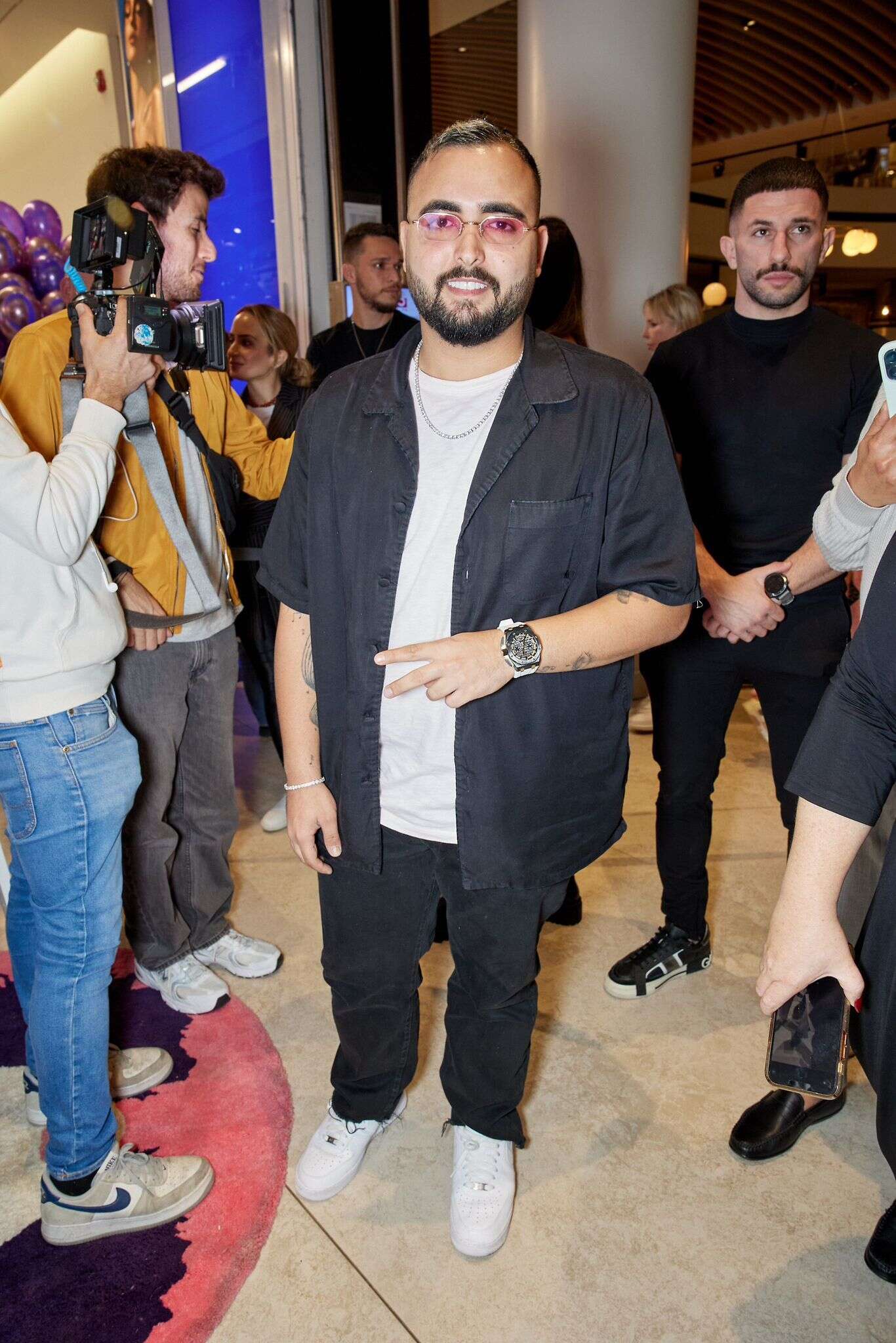 בן זוגה של פינס, הזמר אושר כהן, הגיע בטוטאל לוק בסיסי שכולל מכנסי ג'ינס שחורים, סניקרס לבנות, טי שירט לבנה וחולצת ג'ינס מכופתרת שחורה. אין כאן אמירה מעניינת, פרט למשקפי השמש הוורודים והשקופים, שאנחנו יכולים להסיק שזה הטאץ' של פינס.