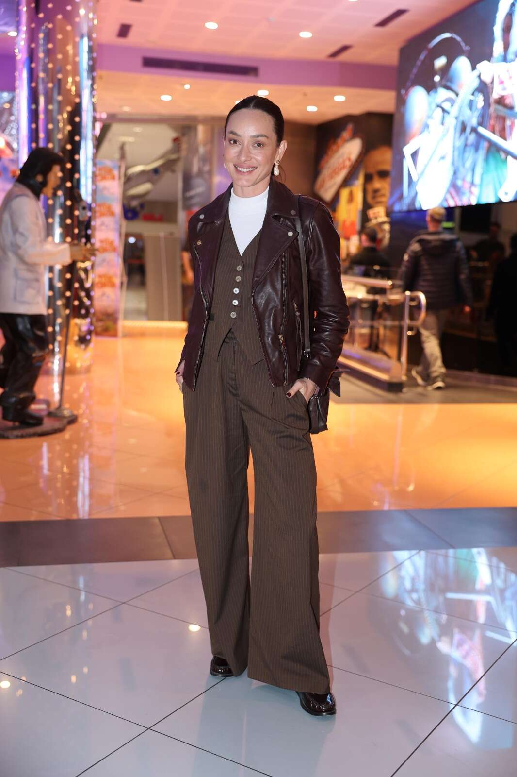 ג'ני צ'רוואני מראה שאפשר להגיע להשקה של סרט בסטייל ובנוחות. היא לבשה מכנסיים שחורים רחבים, טישירט שחורה עם צווארון סגור, ז'קט ג'ינס כחול כהה, מגפי שפיץ כחולים ותיק צד בצבע מוקה טרנדי, אהבנו.