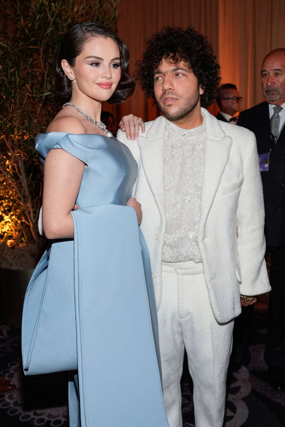 סלינה גומז, שתינשא בקרוב לבן הזוג היהודי בני בלנקו, לבשה שמלה בצבע תכלת של פרדה עם תכשיטים של המותג היוקרתי טיפאני אנד קו והביאה ניחוח הוליווד של פעם.