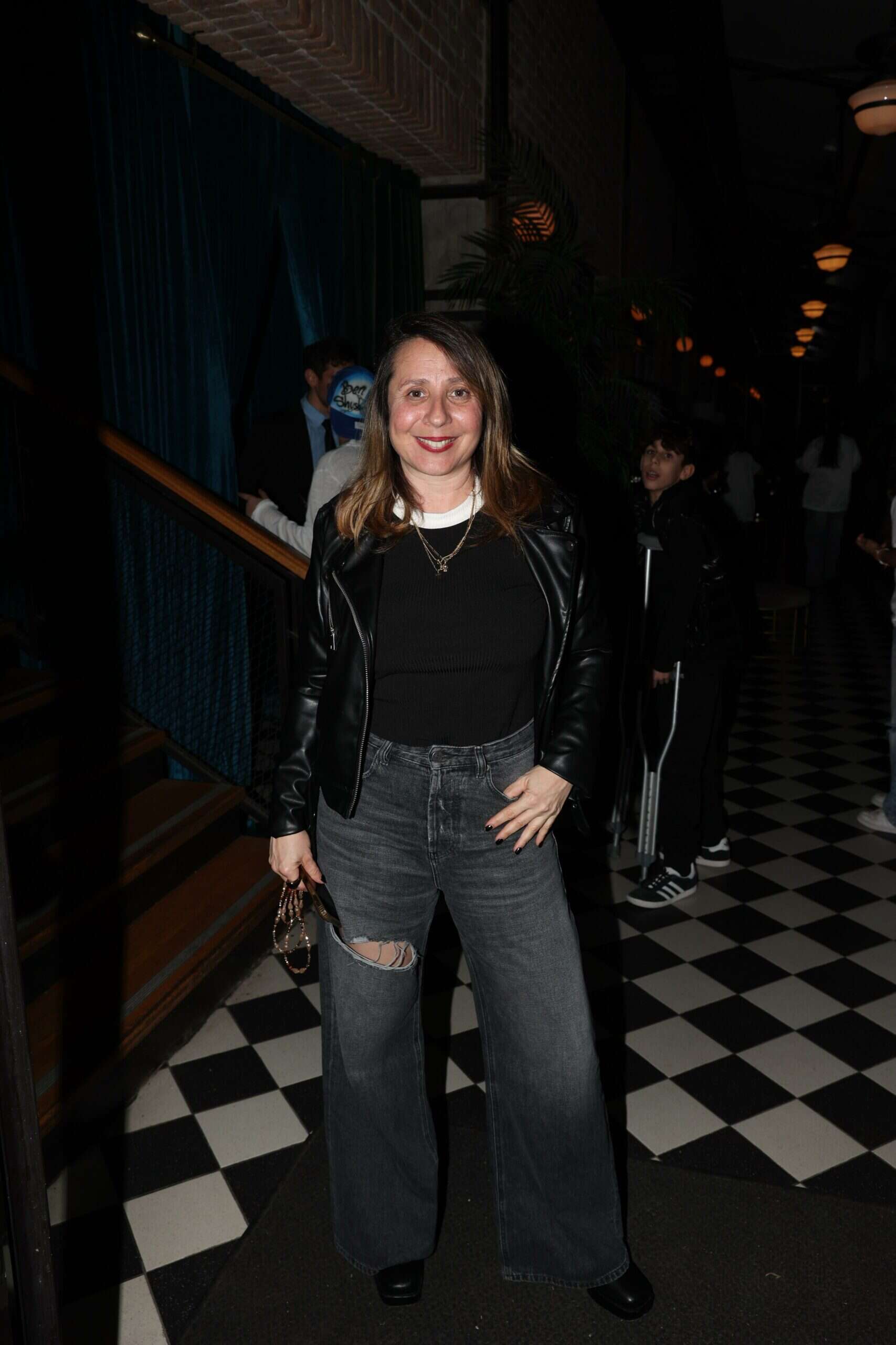 הפתעת הערב היא ליטל שוורץ שהוכיחה שפשוט יכול להיות מושלם: ג'ינס שחור משופשף ברוחב מושלם, סריג שחור עם צווארון לבן, מעיל עור שחור ומגפיים תואמים - לוק מינימליסטי ומדויק.