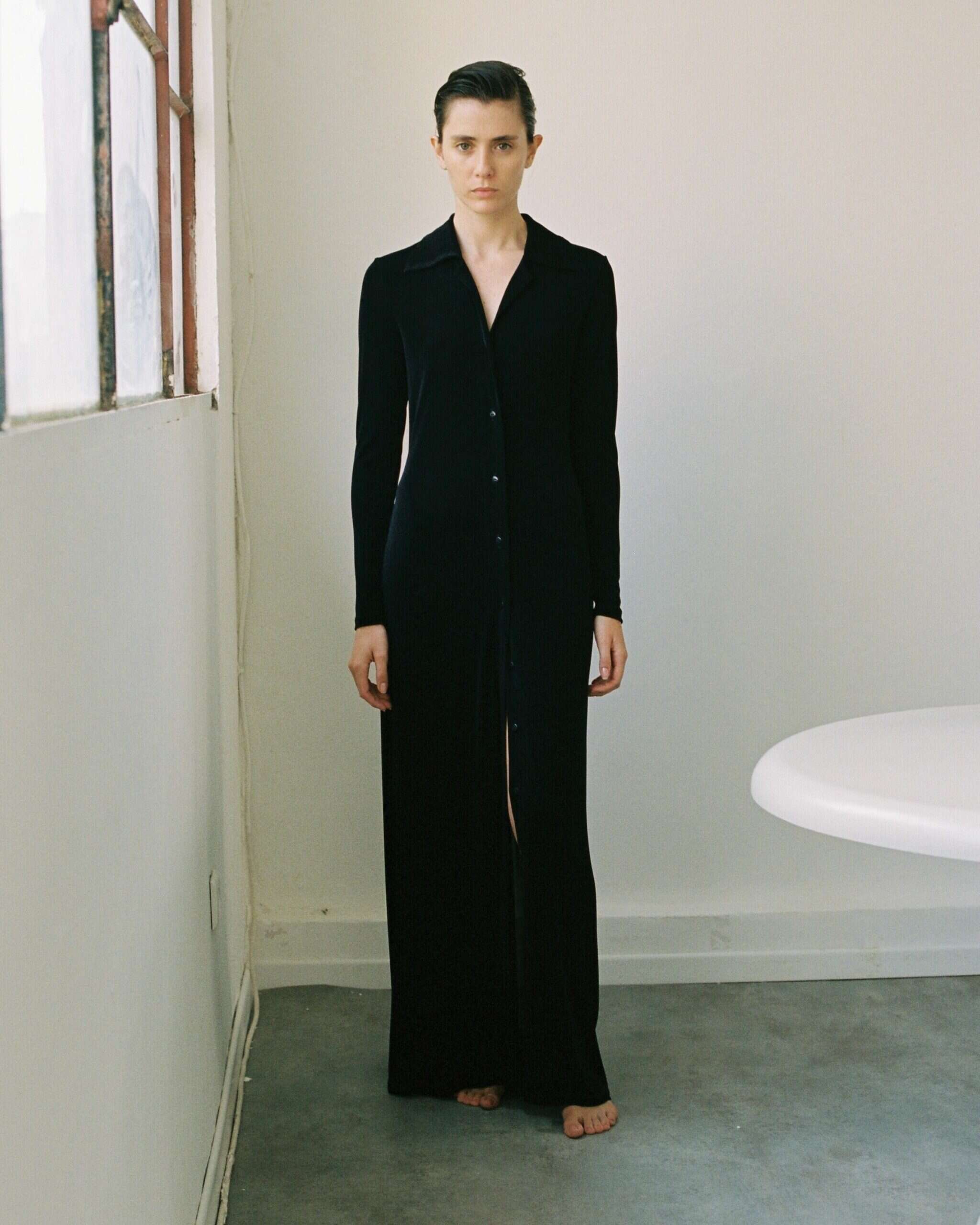 הקולקציה החגיגית כוללת פריטים מונוכרומטיים בגווני שחור, חום, שמנת ואפור - שמלות, חולצות, טופים, חצאית ומכנסיים ברוח הניקיון של שנות ה-90. חן בחר חומרים ייחודיים כמו קרפ לשמלות ארוכות, מכנסי אורגנזה משי, שמלת סאטן גזורה באלכסון, חצאיות ז׳קארד, חזיות, טופים שקופים משיפון, וחליפת חצאית נמוכה עם חולצת בטן בצבע שנהב.
