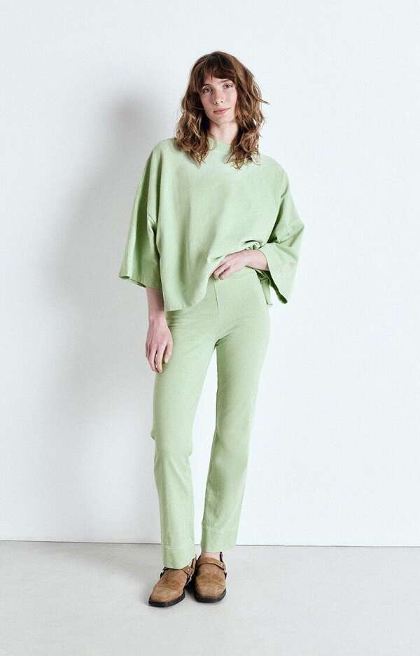 היופי בירוק מנטה הוא ביכולתו לשחק עם צבעים אחרים בלי להשתלט. הלבן הוא שותפו הנאמן, כשביחד הם יוצרים מראה קיצי, רענן ואולטרה שיקי. ג'ינס בגוון בהיר או כהה נותן לו בסיס קז'ואל וקליל, מעולה ללבוש יומיומי. ורוד פסטלי משתלב איתו בהרמוניה מתוקה שמזכירה קופסת מקרונים. אם את בעניין של ניגודים נועזים, כתום, קורל או זהב עמוק יכולים להכניס ממד של תעוזה אופנתית.