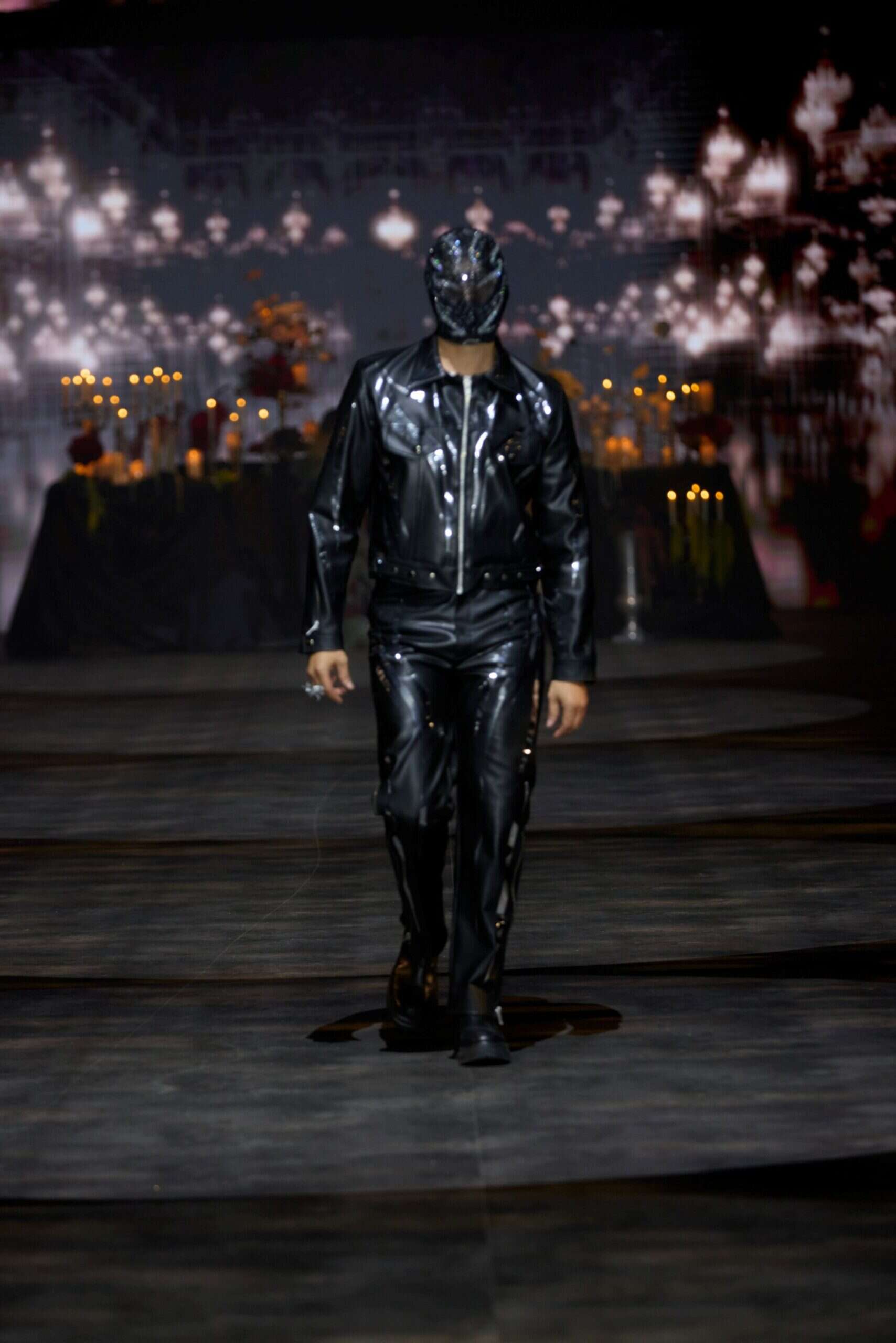 דנקר עלה על המסלול בלוק עור שחור ובמסכה שחורה מנצנצת ואחרי שסיים ללכת הוא הוריד אותה, חשף את פניו וסחף את הקהל בשיר מלכת הרחבה.