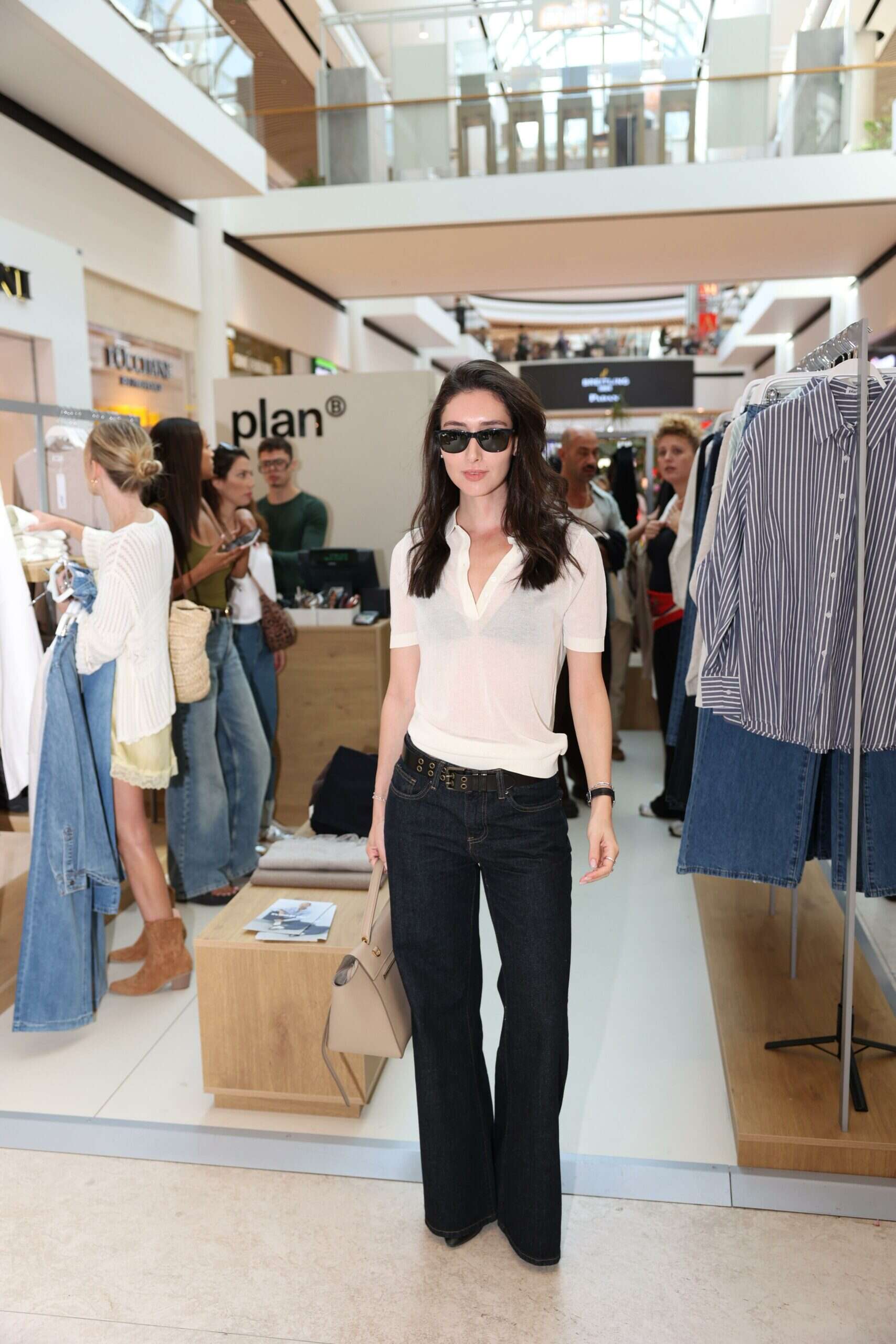 חולצת פולו סריג לבנה מעט שקופה, ג'ינס כחול כהה בגזרה מתרחבת, ונינוחות שקטה שלא מנסה להרשים, אבל מצליחה בלי מאמץ. כך הגיעה אתמול (שני) שירה גוטמן לפתיחת חנות הפופ אפ החדשה של Plan B בקניון רמת אביב, והוכיחה שוב למה היא נחשבת אחת הנשים הכי מדויקות בסצנת האופנה המקומית.