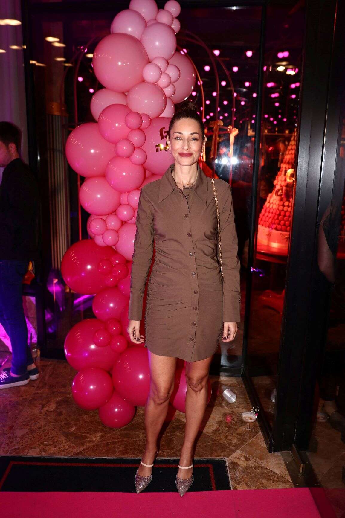 שירלי בוגנים בשמלת כיווצים מכופתרת בגוון מונוכרומטי חום. השמלה הצמודה החמיאה אומנם, אבל היה חסר לנו התלתלים הקופצים או תוספת של תכשיט שיוסיף טאץ' וסטייל מעניין יותר למראה.
