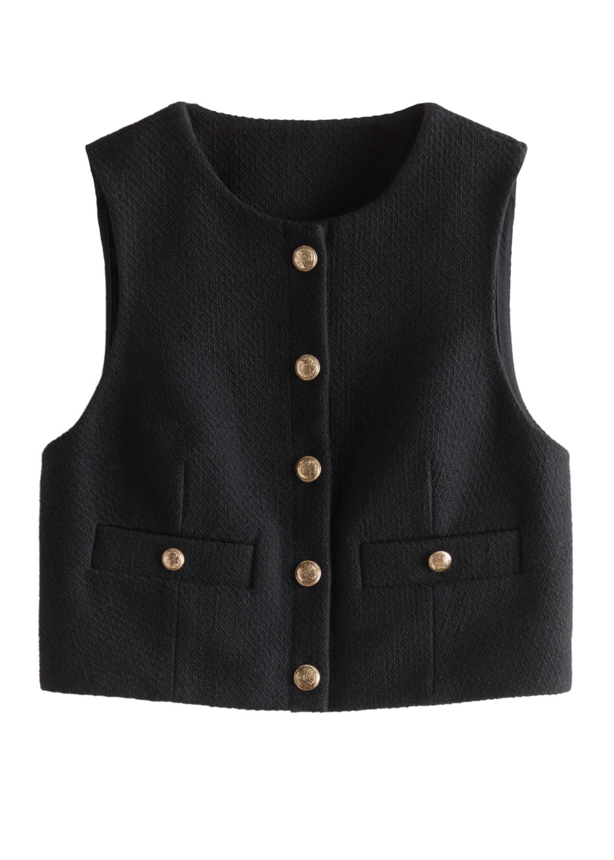 מה: וסט קצר עם כפתורים מוזהבים