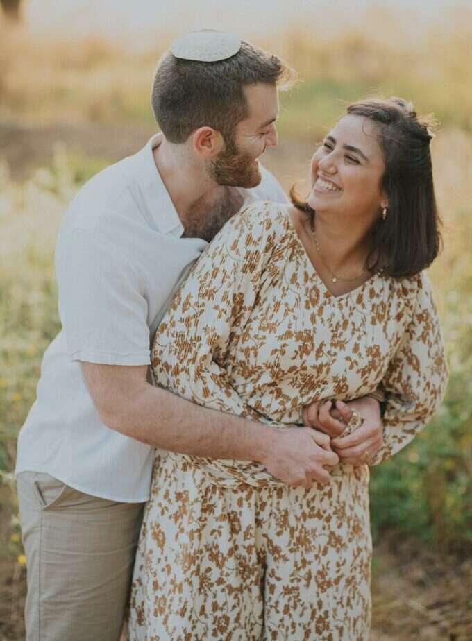 הדייט הראשון: "הסתובבנו שעות ברחבי ירושלים ולא הפסקנו לדבר. זה היה חמישי בערב, היו המון אנשים ואווירה טובה. אפילו עצרנו במאה שערים לאכול צ'ולנט. גילינו ששנינו מאוד אוהבים בעלי חיים וטיולים – אז אימוץ כלב מיד הפך לתנאי לחתונה. אחרי חצי שנה התארסנו ולפני תשעה חודשים התחתנו".