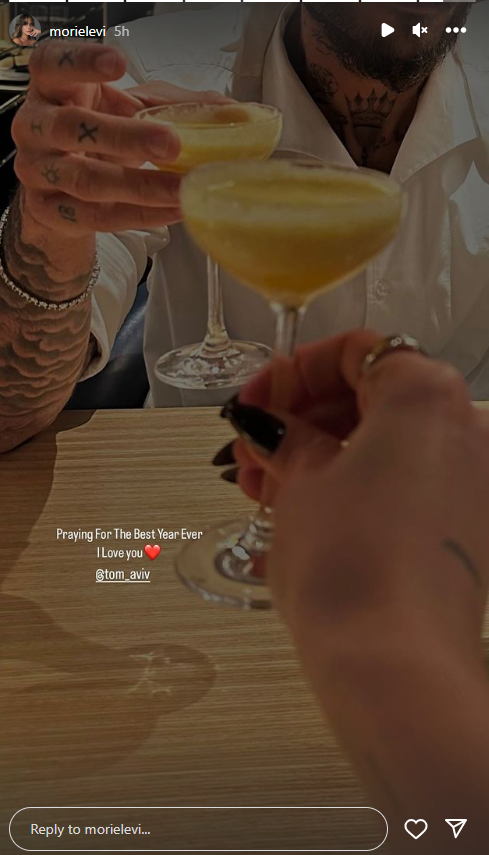 "מתפללת לשנה הכי טובה בעולם, אני אוהבת אותך", כתבה לוי בסטורי בחשבון האינסטגרם שלה בו תייגה את טום אביב והשניים נראו משיקים כוס שמפניה.