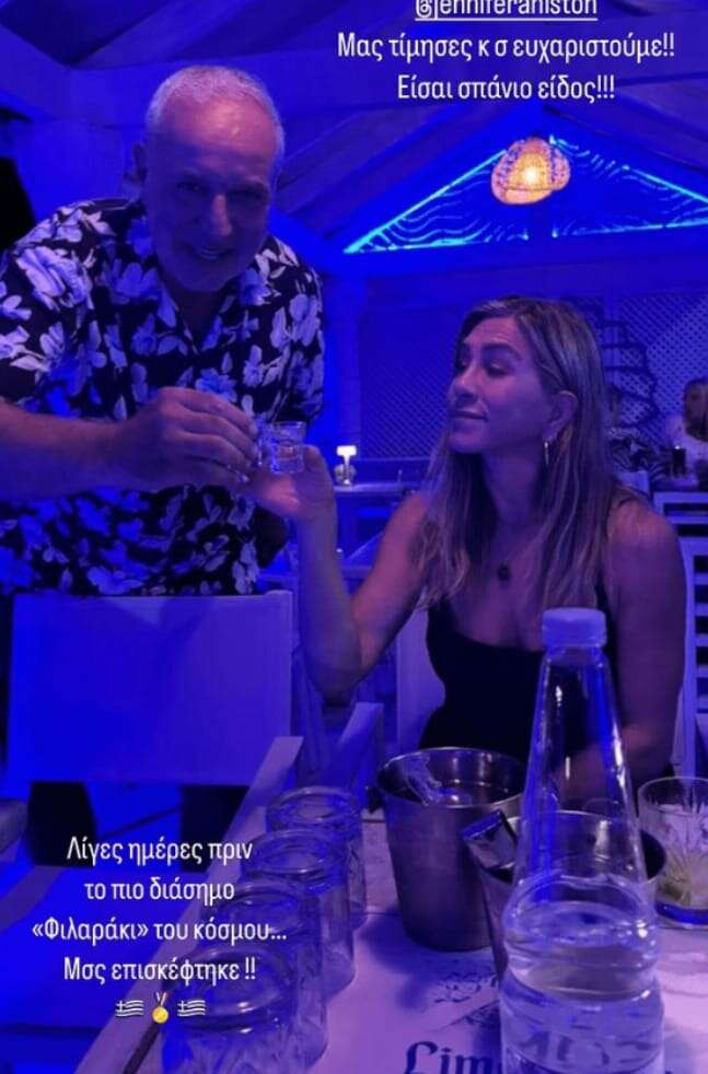השחקנית ג'ניפר אניסטון יצאה לנפוש בקורפו והצליחה להתחמק מצלמי הפפראצי ובכך ליהנות משקט, שלווה ושמש מבלי שיפריעו לה, עד אתמול (שני). בר באי בו ביקרה ולגמה אוזו, פרסם בחשבון האינסטגרם שלו סטורי עם כוכבת "חברים" שותה שוטים וחשף את חופשתה.