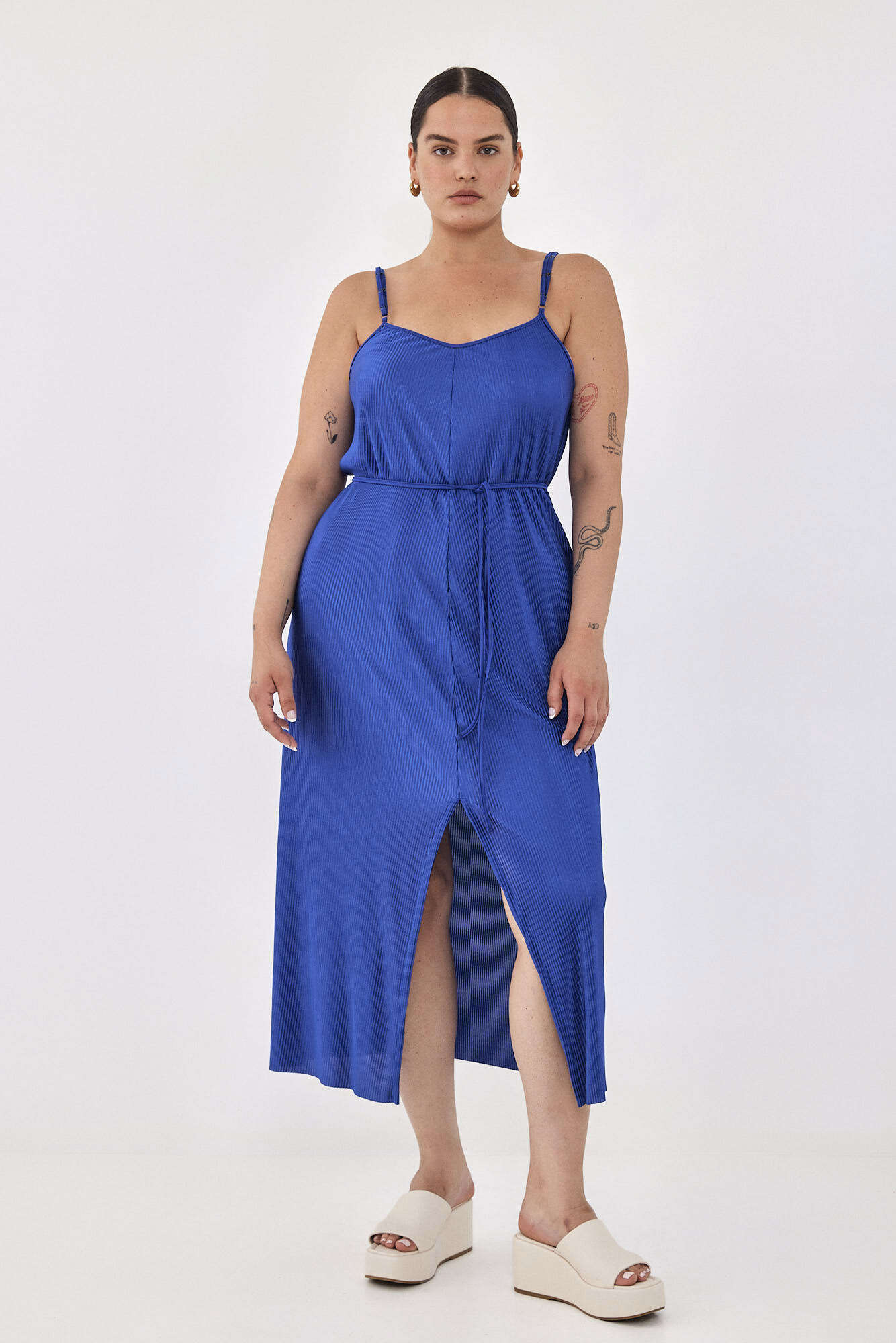 אחד הפריטים הבולטים בקבוצה זו היא ללא ספק שמלת NINA בבד פליסה קוריאני, אחת הגזרות האהובות במהלך השנים שנותנת פתרון מעולה למה ללבוש באירועי הקיץ. בצבע האהוב עלינו כחול רויאל, אחד הצבעים הכי נכונים לקיץ 2024.