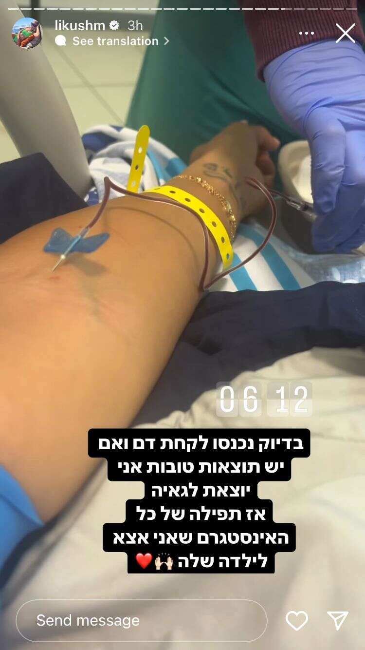 "אני הרבה יותר טוב", כתבה מנחם. "חייבת להשתחרר היום לגאיה (בתה של לי; י"ד). בדיוק נכנסו לקחת דם, ואם יש תוצאות טובות אני יוצאת לגאיה. אז תפילה של כל האינסטגרם שאני אצא לילדה שלי", ביקשה.
