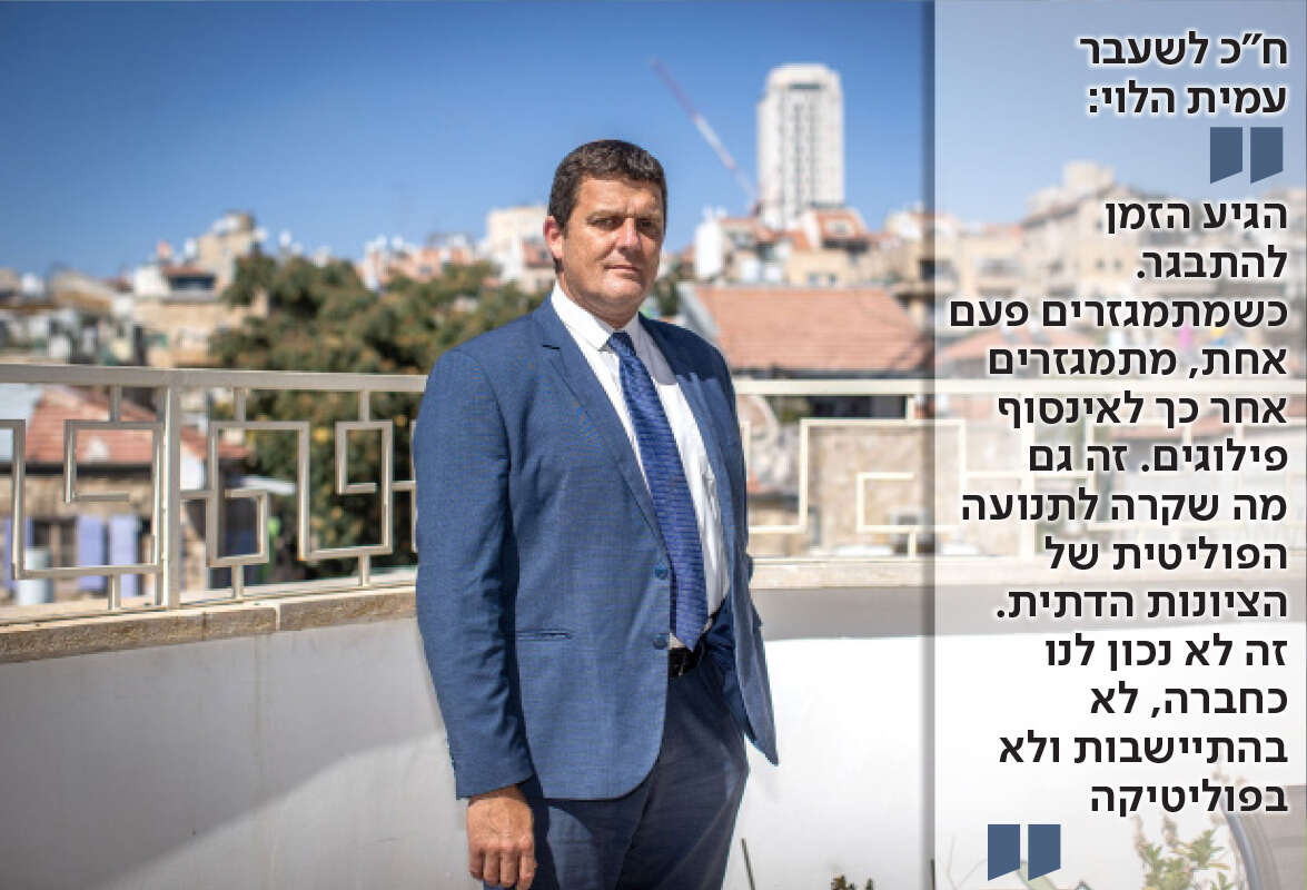 ח"כ לשעבר עמית הלוי, ממייסדי המכללה למדינאות יהודית, מספר 36 ברשימת הליכוד לכנסת ה־25, רואה את הדברים באור שונה: "מיום שעמדתי על דעתי לא הרגשתי נוח להתמגזר למפלגה סקטוריאלית כזאת או אחרת. במאה השנים האחרונות עברנו ממציאות של קהילות לעם. אין לי עניין לחזור למודל הקהילה, וזה נכון גם לגבי הציבור הדתי־לאומי, שאני נמנה עימו. הגיע הזמן להתבגר. כשמתמגזרים פעם אחת, מתמגזרים אחר כך לתת־מגזרים ואינסוף לפילוגים. זה גם מה שקרה לתנועה הפוליטית המגזרית של הציונות הדתית. פעם ראיתי פרסומת לדירות ב'נוף ציון': 'לגור עם אנשים כמוך'. בדיוק הפוך: זה לא נכון לנו כחברה, לא בהתיישבות ולא בפוליטיקה".