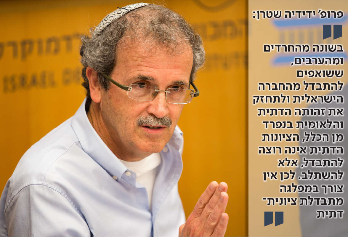 המיתוג הדתי, של העיסוק בזהות היהודית של המרחב הציבורי (שבת, דיני אישות, גיור ועוד), הוא לדעת שטרן, "מתכון בדוק לכישלון", ובעניין התקציבים - הדתיים, לדבריו, "אינם שונים מכל קבוצה אחרת, וגם בהיעדר מפלגה דתית ייעודית, הכנסת רוויה בח"כים ציוניים דתיים שמממשים את שאיפת ההשתלבות שעליה חונכו, הן בקואליציה והן באופוזיציה, ולכן גם החשש הזה אינו מחזיק מים".