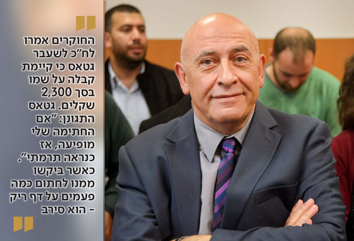 ח"כ לשעבר באסל גטאס מסר לשאלות החוקרים כי אין לו כל מעורבות בנושאים הכספיים של המפלגה. החוקרים הטיחו בו כי נמצאו מאות קבלות מזויפות, וגטאס השיב: "זה לא הגיוני". אלא שאז הציגו לו החוקרים כי קיימת גם קבלה על שמו בסך 2,300 שקלים. גטאס התגונן: "אם החתימה שלי מופיעה, אז כנראה שתרמתי". כאשר החוקרים ביקשו ממנו לחתום כמה פעמים על דף ריק, הוא סירב. הם הטיחו בו כי חתימתו זויפה.
