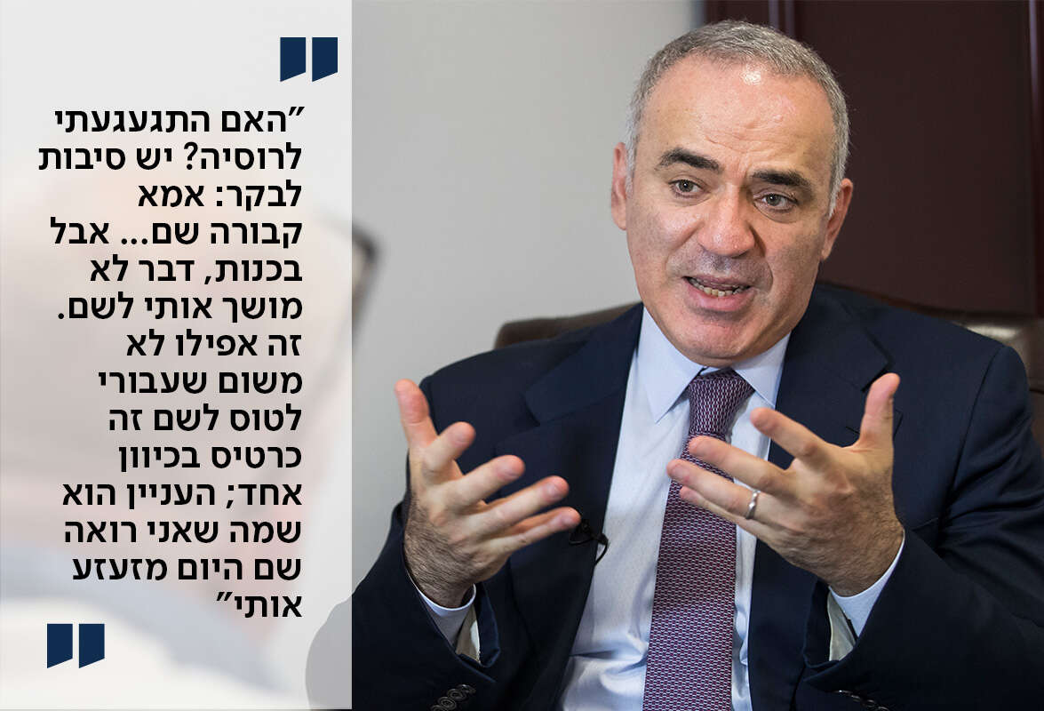 קספרוב לוקח כמה שניות ארוכות לחשוב. "היום הראשון ייראה בהתאם לאיך שייראה היום האחרון של פוטין. האופציה הריאלית ביותר מבחינתי היא התרסקות הצבא באוקראינה, משבר פליטים, אסון כלכלי ברוסיה, ואז מהומות בערים הגדולות, ואז כבר נראה. במצב הזה, אם המערב יהיה מוכן לדרוש שינויים קרדינליים ברוסיה, אני מאמין שיש לנו פוטנציאל לשנות - לחודורקובסקי, לי, לעוד עשרות אלפי אנשים שיוכלו לחזור. נצטרך להוציא את המדינה מהמבוי הזה. אשר לי אישית, תמיד אמרתי שלי אין רצון להשתתף בפוליטיקה 'נורמלית', סדירה, כאשר כזו תתקיים ברוסיה. אבל בתקופת המעבר, כאשר יהיה צורך לכונן אותה ואת הכללים עבורה, אני מאמין שאוכל למלא תפקיד חשוב".