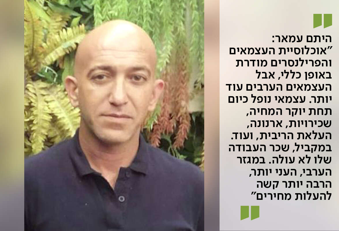 מי שמנסה להשמיע את קולם של העצמאיות והעצמאים במגזר הערבי הוא עו"ד היתם עמאר מכפר קאסם, במסגרת חברותו בפורום העצמאים מבית ההסתדרות. "לצערי הרב, ממשלות ישראל לדורותיהן מעלימות עין מהעצמאים בכלל, ומאלו הערבים במיוחד", אומר עמאר, "אוכלוסיית העצמאים והפרילנסרים בחברה הישראלית מודרת באופן כללי, אבל העצמאים הערבים עוד יותר מודרים ושקופים. עצמאי נופל כיום תחת יוקר המחיה, שכירויות, ארנונה, העלאת הריבית, ועוד. במקביל, שכר העבודה שלו לא עולה. במגזר הערבי, העני יותר, הרבה יותר קשה להעלות מחירים.