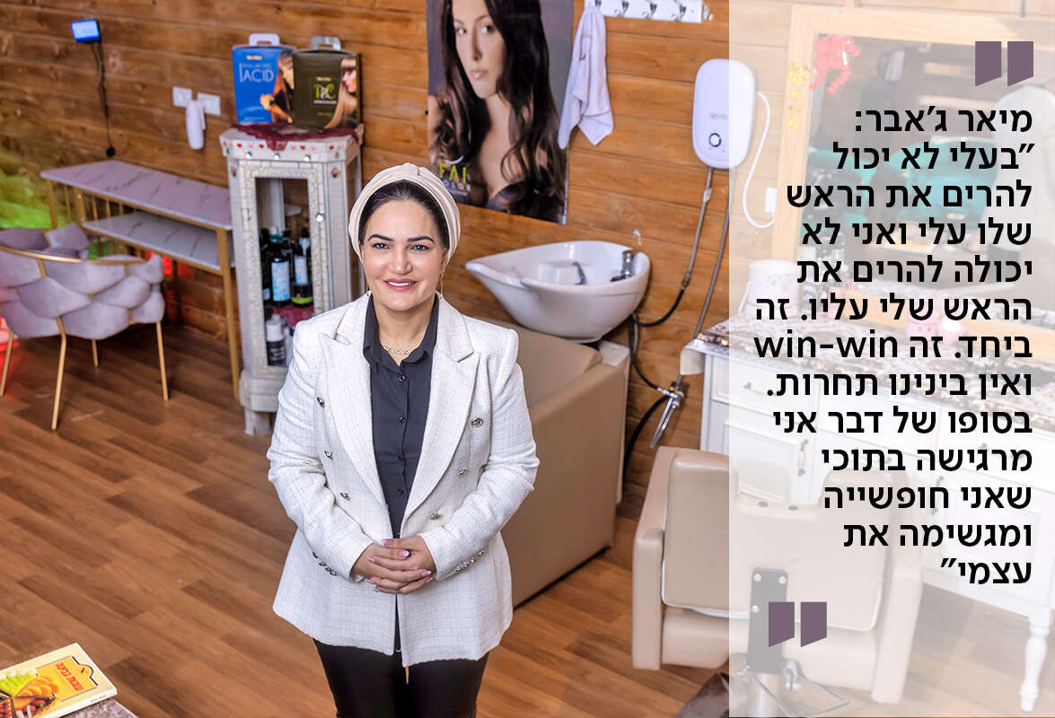"אף פעם לא מסתדרים. הבעל לא מקבל את זה שאת תהיי יותר טובה ממנו. תמיד אני אומרת לבעלי - כל שקל שאני מרוויחה, זה בזכותך. הוא בנה לי את הקליניקה, הוא נתן הלוואה, אז העסק מצליח רק בזכותו. הכי חשוב אצל הערבים שהגבר יישאר הראש של הבית".