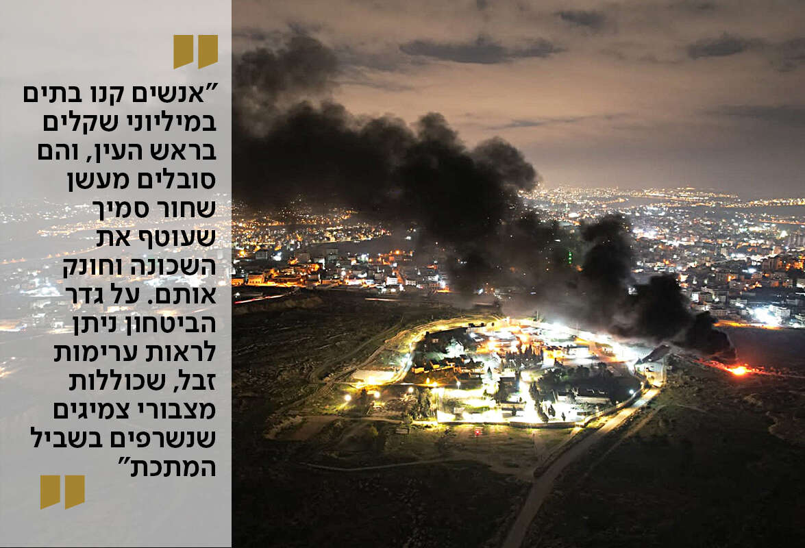 העשן היתמר לגובה עצום. עשן שחור, סמיך, מגעיל. במשך שבועות ארוכים סבלו תושבי יישובי מזרח גוש עציון מתוצאותיה של שריפת ענק של צמיגים ופסולת אלקטרונית שבערו יום ולילה, בעוד משאיות רבות, חלקן מגיעות מתוך ישראל, פורקות פסולת אל תוך הלהבות. בינתיים בבית הערבה, כמה עשרות קילומטרים מצפון לשם, התמודדו גם הם עם שריפה משלהם: על גבול היישוב, בתוך שטח A, בשליטה פלשתינית מלאה, התחוללה שריפת ענק שהפיצה ריח חריף של פלסטיק וגומי חרוך לכל עבר.