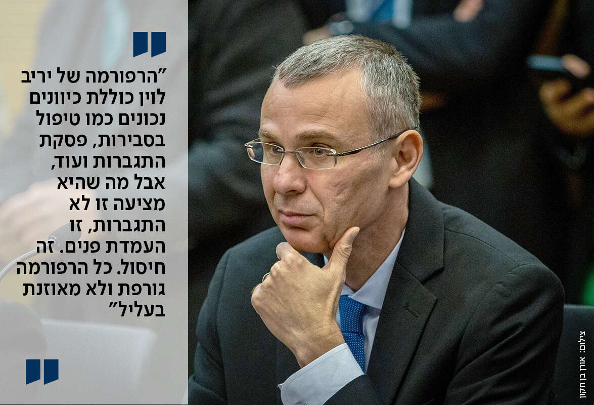 "נכון, הזהרתי מפני זה שנים. המערכת המשפטית טיפלה בכפפות ברזל בכל מי שניסה להציע איזושהי רפורמה. השר לוין אומר לעצמו וצודק - אם לא אפעל מהר ואגרסיבי, במקרה הפחות גרוע אגמור כמו דניאל פרידמן ובמקרה הרע אגמור כמו יעקב נאמן. ודי לחכימא. אני אמרתי - כל מי שיעשה תיקון, מערכת המשפט תטפל בו כמו שטיפלה בכל קודמיו".
