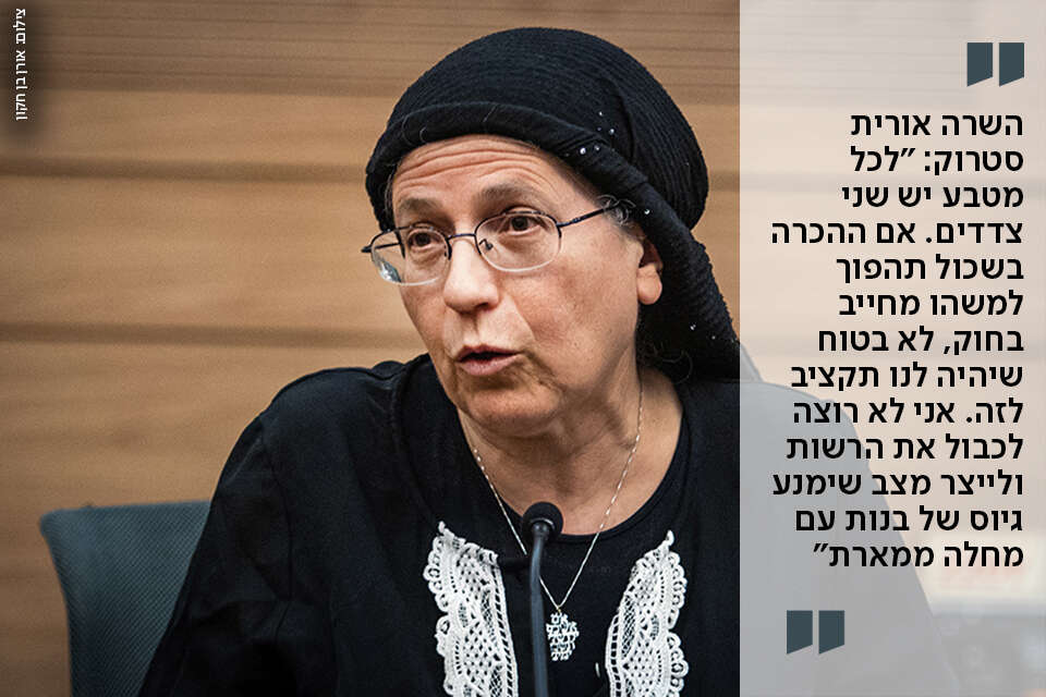 "ברוך ה', זכיתי להגדיל את התקציב של השירות הלאומי", אומרת אורית סטרוק, השרה הממונה על השירות הלאומי האזרחי. "כעת אנחנו בשיאה של עבודת מטה מעמיקה במטרה להוביל רפורמה מקיפה בשירות הלאומי־אזרחי. מדובר בשלל תחומים כמו תהליך המיון, התמיכה הרגשית והחינוכית במהלך השירות, תחום המוגנות בשירות שהוא מאוד בעייתי, וגם ההכרה בשכול תוך כדי שירות. השירות הלאומי הוא שירות התנדבותי, אבל הוא מקבילה של שירות צבאי במובנים מסוימים, לכן המדינה צריכה להיות שותפה".