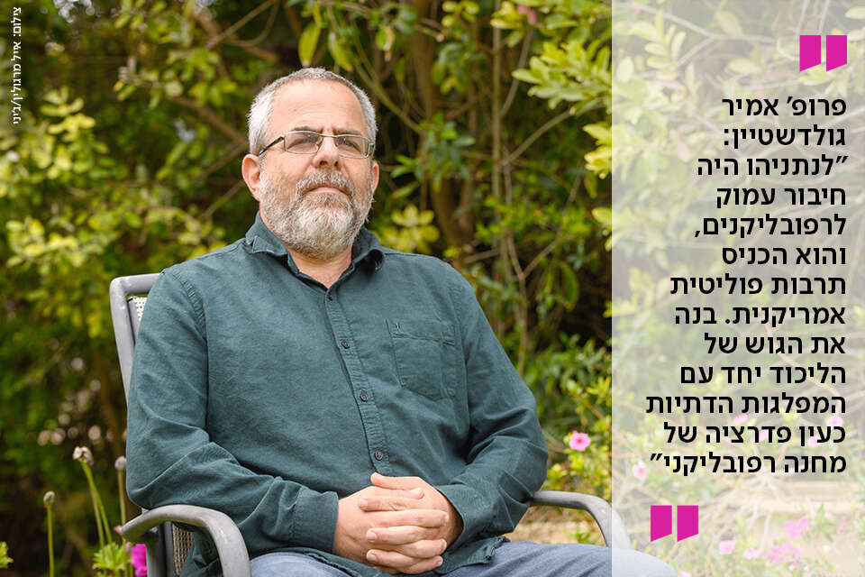 גולדשטיין: "מנהיגי הימין מימי התנועה הרוויזיוניסטית, דרך חרות והליכוד, זכו למעמד בולט. זאב ז'בוטינסקי ומנחם בגין היו בוודאי דמויות נערצות, וגם יצחק שמיר זכה להערכה רבה. אך לצד מעמדם כמנהיגים, הם הדגישו באופן מתמיד את היותם חלק מצוות הנהגה, בלשונו של בגין 'ראשון בין שווים'. גם אם הניסוח הזה היה מופרז, ברור שנתניהו עיצב את מנהיגותו, במיוחד מ־2009, בדגם אחר, אמריקני, נשיאותי, עם רמזים לאפשרויות שהן אף מעבר לנשיא. בניית הלשכה, מקומם של בני המשפחה במערכת המפלגתית והפוליטית.