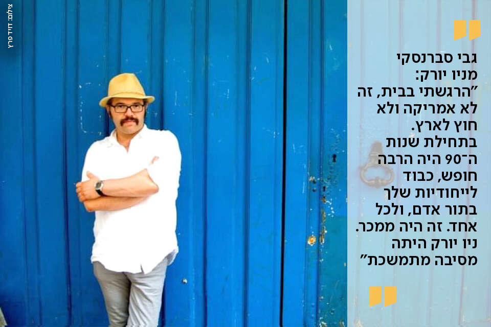 "אל תשכח שבישראל היה אז אוסלו", אומר גבי, "שלום והכל. היה נראה שאנחנו הולכים להיות מדינה נורמלית. נולדתי בארגנטינה למשפחה ציונית לאללה, כל ההורים והדודים היו חברים בתנועות ציוניות, אבל באתי לניו יורק משתי סיבות. הראשונה, כי הקליטה שלי בתור ילד היתה זוועתית, וזה השפיע עלי. עם זאת, התרבות הישראלית, ואפילו התרבות הבאר־שבעית, עדיין מאוד חזקות בי. הסיבה השנייה היתה להגשים את החלום המוזיקלי שלי.