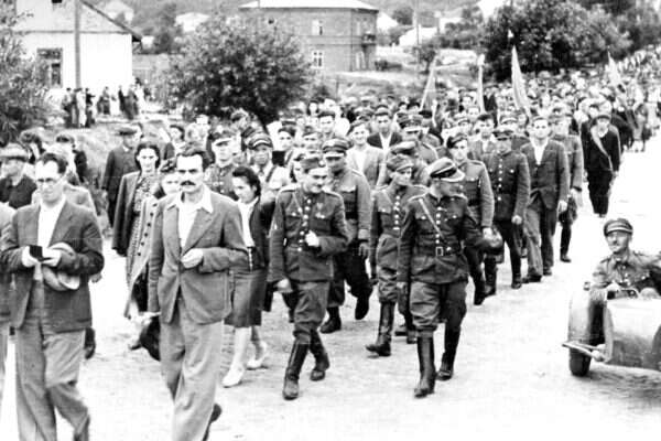 "בחוץ, בתוך ההמון, עמדו גם הילד הניו בלשצ'יק ואמו, שהגיעה לראות במו עיניה איפה החזיקו את בנה. רק שאין מרתף בבניין הזה בכלל. האמא צעקה כל הזמן, כמו אחרים בקהל. התבצרנו בקיבוץ. מבעד לחלון ראיתי את הקהל גדל וגדל. זה התחיל ביחידים, ואחר כך היו עשרות, מאות, ובסוף אולי אלפיים אנשים. השוטרים הגיעו יחד עם הקהל הזה. הם צעדו בראש הקהל. ראינו מהמרפסת איך הם נכנסו לחצר שלנו".