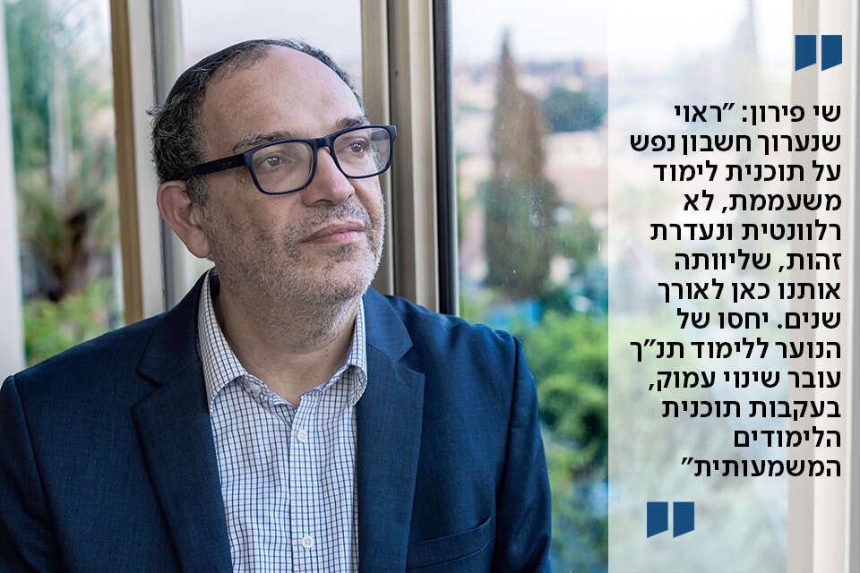 פירון (שר החינוך בשנים 2014-2013) מגיב: "איני זוכר דברים שאמרתי ב־2014. ייתכן שנאמר משפט בהקשר כזה או אחר, אבל מעולם לא חשבתי שצריך לצמצם את לימודי התנ"ך". פירון סבור כי "ראוי שכולנו נערוך חשבון נפש על תוכנית לימוד משעממת, לא רלוונטית ונעדרת זהות שליוותה אותנו כאן לאורך שנים". לדבריו, יחסו של הנוער ללימוד תנ"ך עובר שינוי עמוק בעקבות תוכנית הלימודים המשמעותית שאותה הנהיג בתקופתו, והוא גאה על כך.