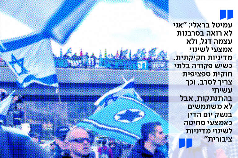לאן זה הולך, אני שואל את פרופ' לבל, כשבחוץ אווירת "תחזיקו אותי" משני הצדדים. "הסרבנות הסופר־המונית הזו היתה משוכנעת שתביא מזמן את הסחורה, וכל הצדדים היו בטוחים שהסיפור הזה ייעצר מזמן", הוא מנתח. "המילואימניקים הסרבנים שיוועו לכך שתהיה כתובת בממשלה שתאזין להם, שתאמר בישיבת הממשלה שצריך לעצור הכל ולעשות חושבים כי צה"ל מעל הכל.