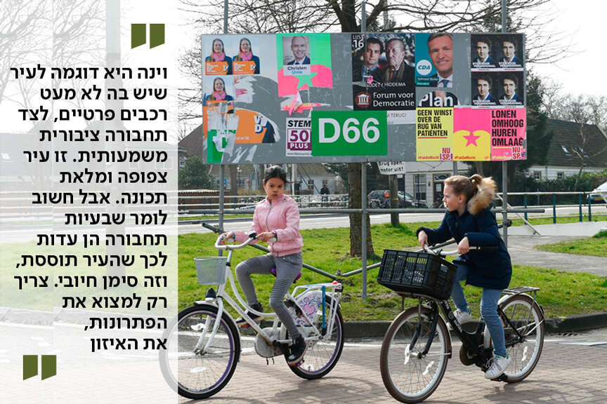 "וינה היא דוגמה לעיר שיש בה לא מעט רכבים פרטיים, לצד תחבורה ציבורית משמעותית. זו עיר צפופה ומלאת תכונה. אבל חשוב לומר שבעיות תחבורה הן עדות לכך שהעיר תוססת, שאנשים רוצים להיות בה, וזה סימן חיובי. צריך רק למצוא פתרונות, את האיזון. בעולם יש כמובן דוגמאות לערים שעשו זאת: בסקנדינביה (למשל, קופנהגן) וגם בהולנד - שלמדה בדרך הקשה אחרי שספגה הרוגים רבים בכבישים בשנות ה־60 וה־70, והחליטה להשקיע באופניים ופחות ברכבים פרטיים".