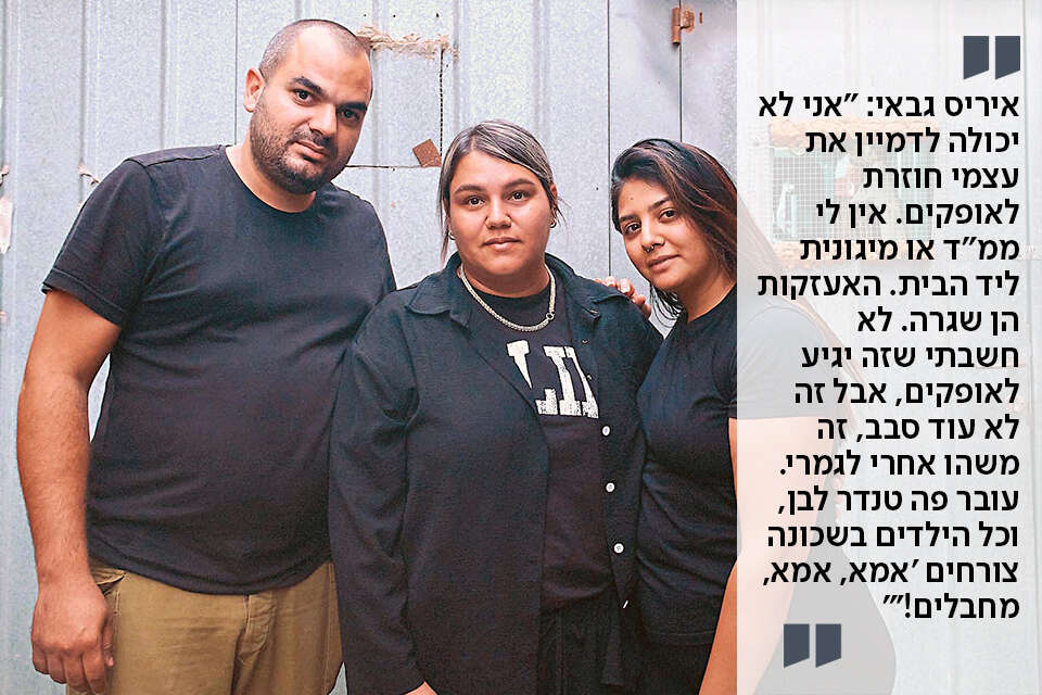 "לחזור לאיך שהיינו - אני לא יכולה לחשוב על זה. אני מתה לחזור לבית שלי, אבל אני סוג של פליטה. אני לא יכולה לדמיין את עצמי שם. אין לי ממ"ד או מיגונית ליד הבית. האעזקות הן שגרה. לא חשבתי שזה יגיע לאופקים, אבל זה לא עוד סבב, זה משהו אחרי לגמרי. עובר פה טנדר לבן, וכל הילדים בשכונה צורחים 'אמא, אמא, מחבלים!'".