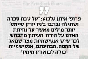 מי שעוקב מקרוב אחרי התקשורת האמריקנית זה עשורים רבים הוא פרופ' איתן גלבוע, מומחה לארה"ב, מייסד וראש בית הספר לתקשורת והמרכז לתקשורת בינלאומית באוניברסיטת בר־אילן. לדברי גלבוע, היחס כיום לישראל ב"ניו יורק טיימס" הוא החמור ביותר שהיה אי פעם. "העיתון קיצוני ביחס שלו לישראל", הוא אומר, "אפילו ביחס לעיתונים אחרים שמזוהים עם השמאל בארה"ב, כמו 'וושינגטון פוסט' או 'בוסטון גלוב'. היחס העוין שלהם לישראל עומד במדרגה בפני עצמה. כיום ה'ניו יורק טיימס' רואה עצמו כנושא דגל של אנטי־ישראליות ואנטי־ציונות, ויש בו אפילו נטיות אנטישמיות".