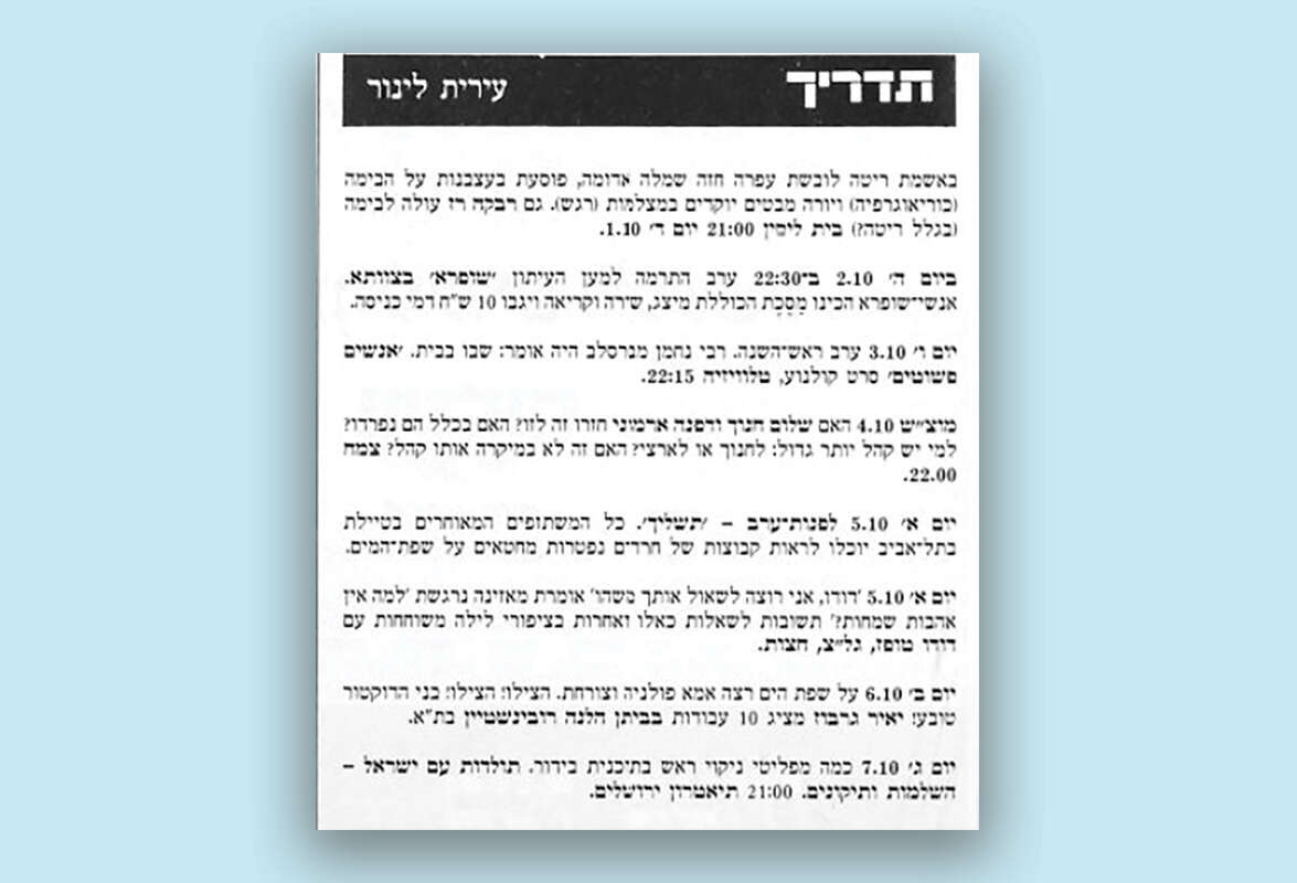 עירית לינור: "את הטור כתבתי בכתב יד ושלשלתי אותו לתיבת דואר בבית "דבר" ברחוב שינקין בתל אביב, ומשם שיגרו אותו למערכת בגבעת שאול בירושלים"