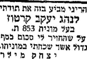 במשטרת רמת גן התקבל דיווח על אדם תלוי על עץ בשייח' מוניס (לימים האזור שבו הוקמה אוניברסיטת תל אביב), וניידת משטרה מיהרה למקום תוך השמעת צפירות רמות. בהגיעם ראו השוטרים התקהלות של אנשים ליד עץ גדול, אך אף אדם לא היה תלוי עליו. בבירור נמצא ששומר המקום קשר את עצמו לעץ כמחאה נגד מעבידו שלא שילם את שכרו, ולאחר שהשכנים התירו את החבל הוא הלך לדרכו.