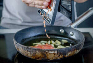 8. מטגנים את שיני השום עם מעט שמן במחבת.