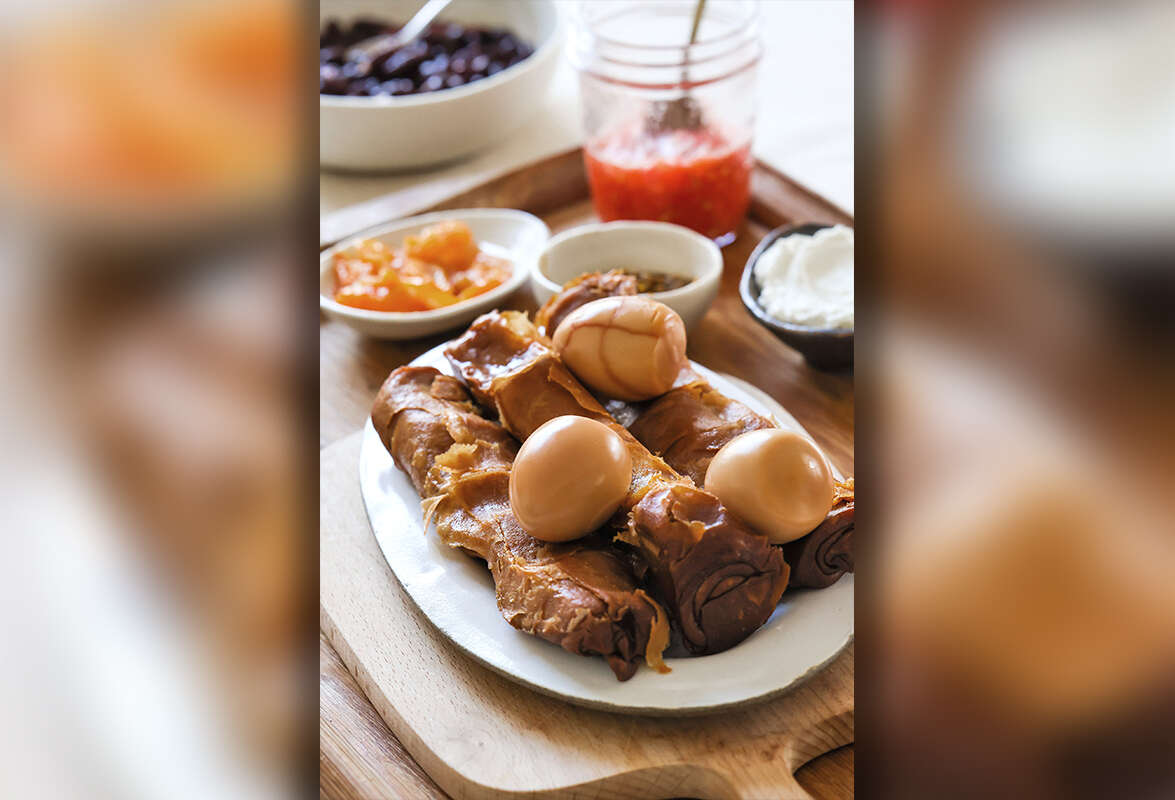 שם, לצד אמא שלה רחל, ניצבה רינת ובאצבעות חכמות פתחה עלים דקיקים מבצק שאותו הכינה מקמח מלא המבוסס על חיטות עתיקות, מושחת אותו בכמות נדיבה של סמנה. בת ואם שממהרת לסדר אחריה, חוזרת ומסבירה לשתינו את חשיבותם העליונה של הארגון והסדר. גם היא, כמו רינת שלה, מאוהבת במטבח. חסידה של הליכה בדרכים הסבלניות של בישול ושימור מהעץ אל הצלחת. קולה את הפקאנים שמצמיח העץ שבחצר, את פירות המנגו היא קוטפת כשהם עדיין בוסר, רוקחת מהם עמבה, את פירות הלימון היא כובשת, וכולם יחד מצטופפים במקרר עם כבושים ומותססים אחרים. צנצנות מטבוחה לצד סחוג בוער, משגע, שאותו למדה להכין חיים שלמים מהצדוקים, המשפחה של שלמה שלה.