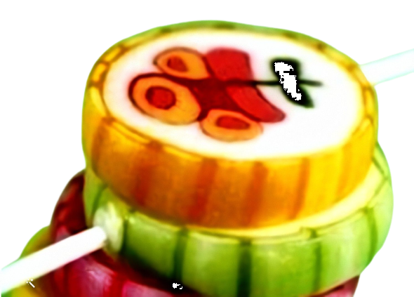 נראה שבזמנים ההם כל מה שהיה חשוב ליצרני הסוכריות ודברי המתיקה היה משיכת עיני הילדים באמצעות צבעים זרחניים בוהקים. זאת, לצד מתיקות מוגזמת, שהושגה באמצעות כמויות בלתי נתפסות של סוכר ששולבו בייצור. הגימיק היה לא פחות חשוב, ובסוכרייה היו משלבים דימויים של פרח, ליצן או מכונית זעירה. הילד, מצידו, היה מוציא בכל רגע את הממתק מפיו, כדי לבדוק שהתמונה לא נעלמה.