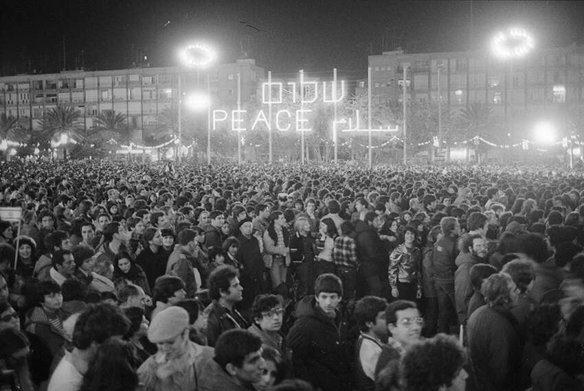 הפגנת תמיכה בהסכם השלום עם מצרים, כיכר מלכי ישראל בתל אביב, מארס 1979