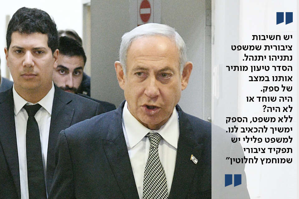 "ראה את אילנה ראדה הגיבורה שלא ויתרה גם אחרי הרשעה. למשפט יש כוח לשכך את כאבם של הנפגעים מעצם בירור האמת. הבעיה היא שלא רק שלא מתחשבים בדעתם בעסקאות האלה, אלא שבכל הקשור לעבירות שחיתות וטוהר מידות אין אדם שנפגע אלא הציבור הוא שנפגע ובתיקים האלה אין לאף אחד אינטרס לנהל משפט ואין נפגע עבירה שידרוש בירור האמת. היה שוחד או לא היה? ללא משפט, הספק ימשיך להכאיב לנו גם אחרי עסקת טיעון. למשפט הפלילי יש תפקיד ציבורי שמוחמץ לחלוטין ועלול להיות מוחמץ גם במשפט נתניהו".