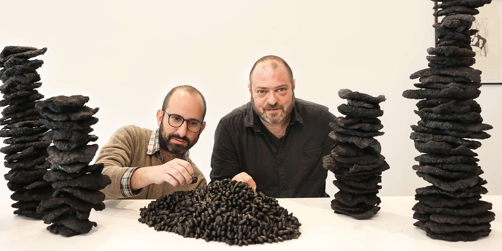 "אנחנו שני אמנים שמתעסקים בזיכרון ובתחושה של זמן שעבר, בטרנספורמציה של חומר, אבל אני אמן שחושב דרך הידיים", אומר סיוון, ששדות המחשב זרים לו, כשאני שולחת מבט לפסטת השימורים שלו, שמרחוק נראית כמו שטריימל וככל שמתקרבים אליה מתחדדים פיתולי פסטה וחרוזי זיתים. כמה יופי יש במראה הזה, כמה כוח יש באופן שבו ויתרו על מרקמים או על ריחות הקוראים לאכילה.