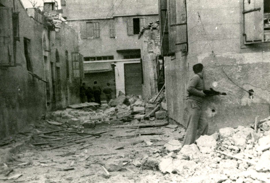 השמדת מפקדת הכנופיות הערביות ביפו, ליד מגדל השעון, ינואר 1948