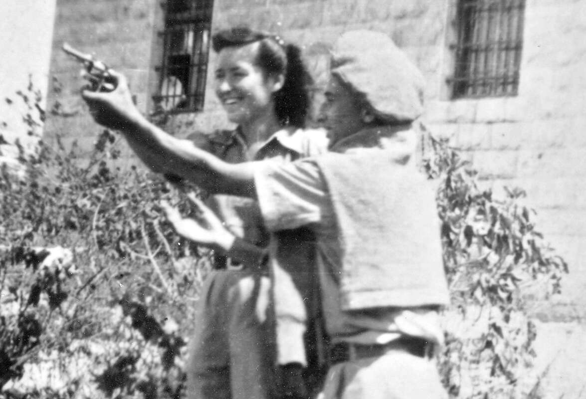 אנשי לח"י השתתפו בקרבות מפורסמים על ירושלים וסביבתה במלחמת העצמאות, ובהם הלחימה על שייח' באדר, ליפתא, קטמון ודיר יאסין. כשיצאו הבריטים מהעיר ביום הכרזת המדינה, 14 במאי 1948, השתתפה הלח"י בקרבות העקובים מדם לכיבוש מנזר נוטרדאם שמול השער החדש, עמדה אסטרטגית שחלשה על נתיב חשוב לתוככי העיר העתיקה. אחרי הקמת צה"ל, ב־26 במאי 1948, המשיך חלק מהלח"י לפעול כמסגרת עצמאית באזור ירושלים - שנותרה מחוץ לתחומי מפת החלוקה ויועדה לבינאום. בצילום נראים אימוני נשק של הלח"י בעיר: טוראי אביאסף ("עוזי התימני") קרואני ז"ל מלמד את לאה לוי־זילבר ("אביבה הקטנה") לירות באקדח. קרואני נהרג ב־25 ביולי 1948 בפיצוץ מחסן נשק במחנה דרור שבשכונת טלביה.