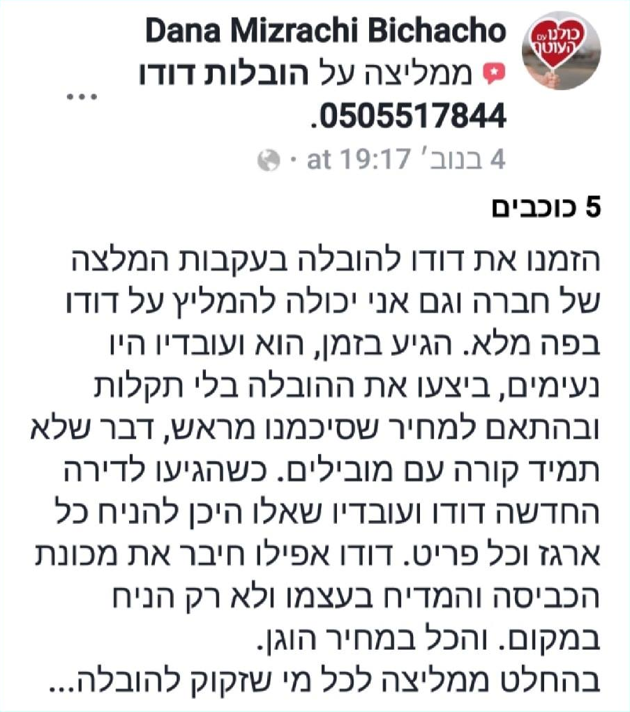 השירות של “הובלות דודו” כולל בתוכו בין היתר: